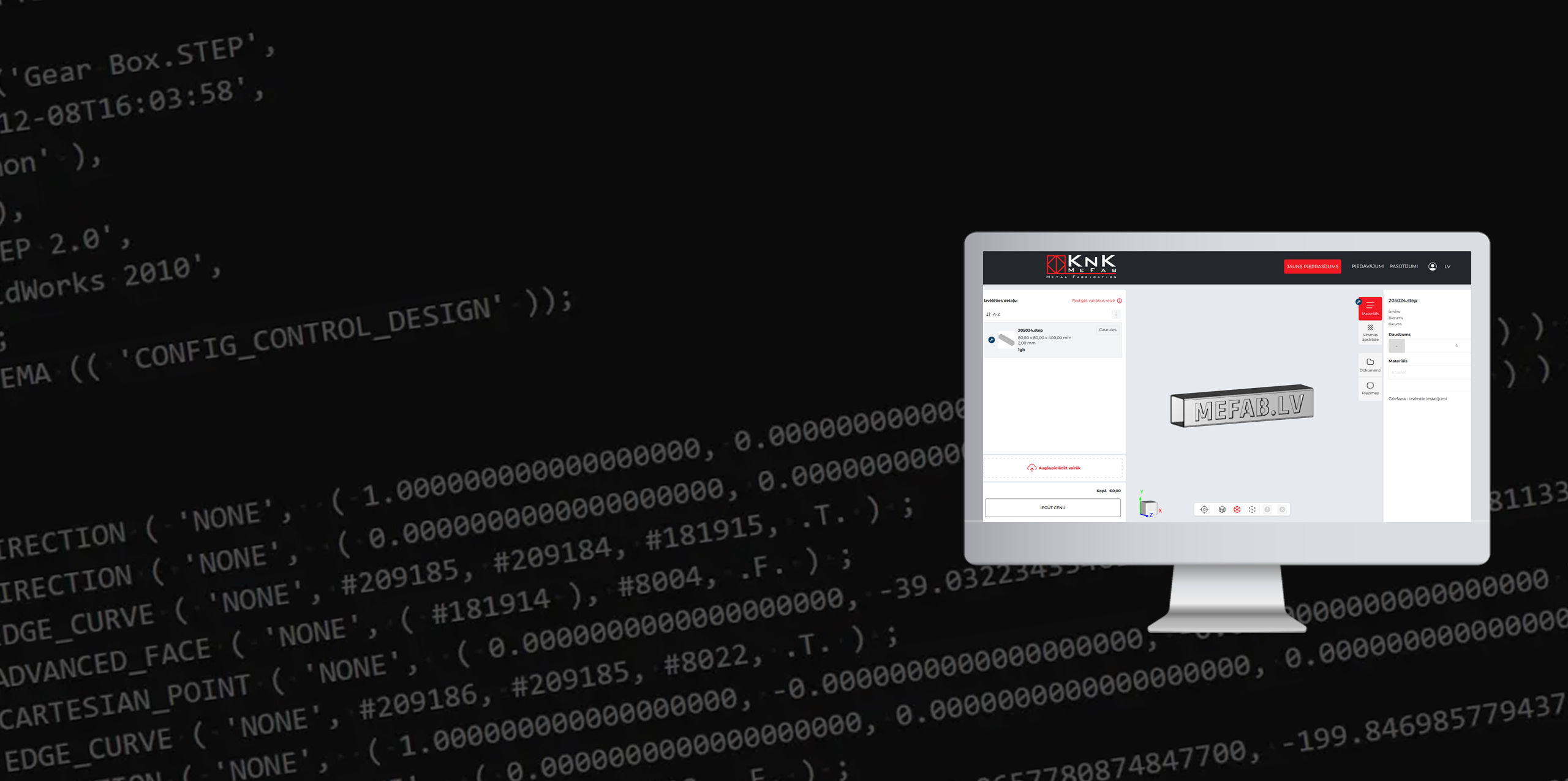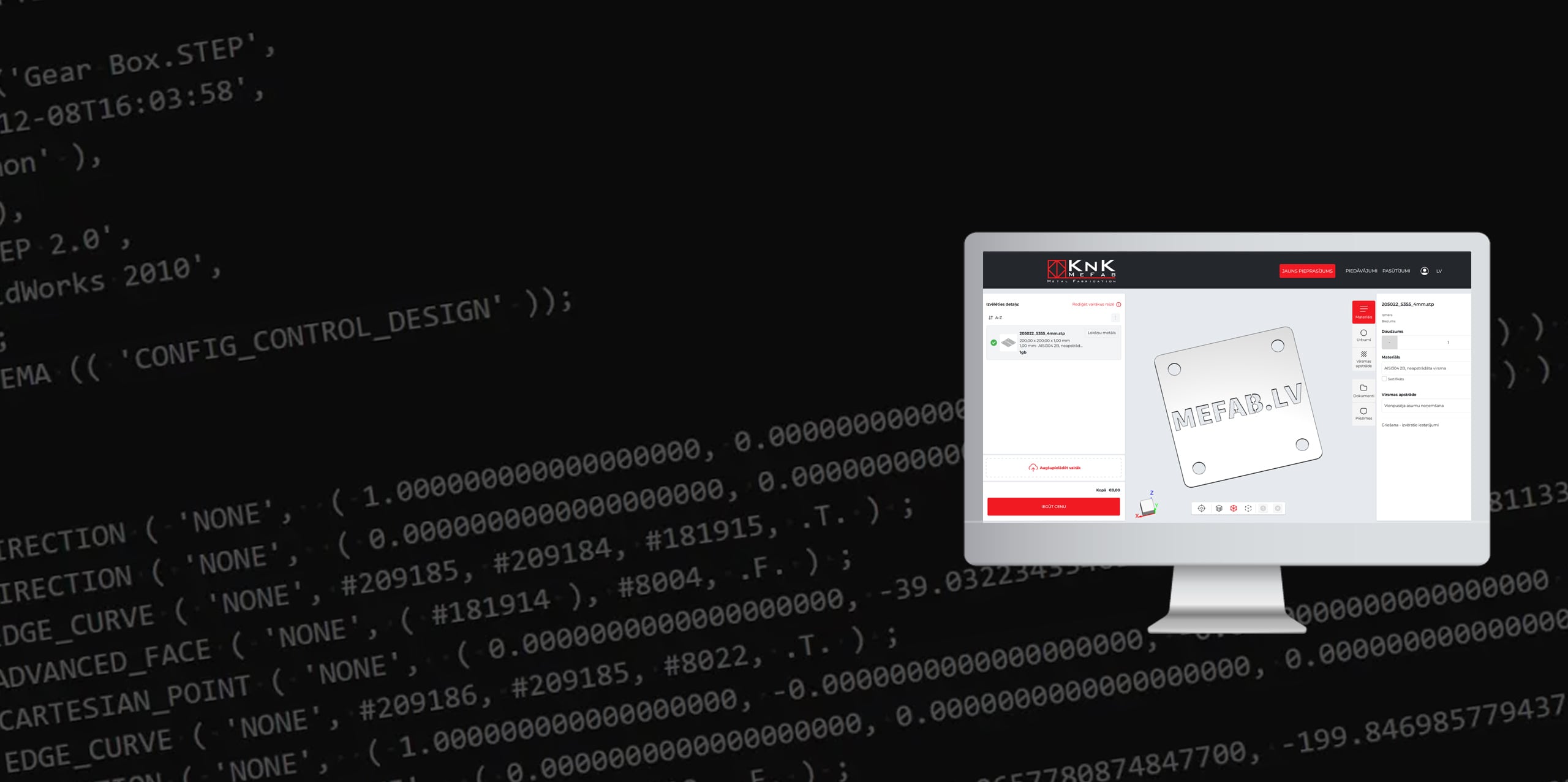 - Ielādē .step vai .dxf failu
